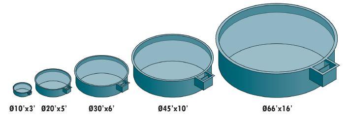 Circular dual drain tanks come in many sizes and can be constructed from many materials. Production goals, stocking plans, costs, and risk tolerance can help determine the volume and number of tanks needed. Large farms trending toward larger culture tanks demonstrate scalability. However, the diameter-to-depth ratio dimensions impact hydrodynamics. Tanks with diameter-todepth ratios of 3:1 to 10:1 have been successfully used, though ratios of 4:1 to 6:1 are recommended for good self-cleaning and mixing.