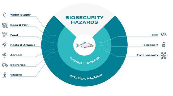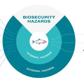 These pests and animals are external hazards that could carry pathogens into the facility. Some could stress the fish which eventually can lead to welfare and health issues. Other related biosecurity risks include damage to feed bags and electrical systems.