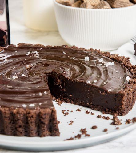 2. In a separate bowl, blend together flour, baking powder, baking soda and 50g sea salt. Mix into butter mixture. Stir in dark chocolate.