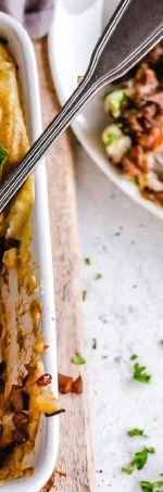 Classic comfort food with a healthy vegan twist. Packed with flavourful lentil mushroom filling hidden under a layer of creamy pureed potatoes. Rich, cozy and satisfying, perfect for a lunch or brunch option.
