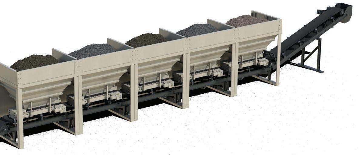 hopper module provides a 19 yd³ (14.5 m³) capacity, featuring an offset taper that reduces bridging in slabby materials. Optional components, such as a grizzly reject conveyor or a self-cleaning magnet, can be added to enhance efficiency.