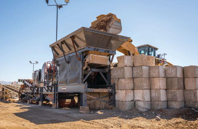 “We are developing a recycle-specific jaw crusher that’s extra-wide for handling sidewalk slabs. We are seeing recycling become a bigger target, particularly in different parts of the world where the untouched stone or green sites have been mined out or crushed out,” Holmes says. “Recycle is something were starting to hear more about and have a jaw specific for that application that’s 63 inches wide. It’s very lightweight for the size of jaw it is. People are going to like that a lot. It’ll be portable and extra wide.”