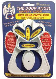 The Door Angel is hung over the deadbolt knob, requiring no installation. When someone tries to turn the deadbolt from the outside, the device will push against the doorjamb or a restrictor. This prevents the deadbolt from turning, the slide from retracting, and the door from opening, so it is effective against both key bumping forced entry and unwanted access by those with a home key. The device is designed to fit over a deadbolt that locks in any position, including vertical, horizontal, or 45-degree angle. It can be installed without the use of any tools. www.lokabolt.com