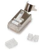The shielded Cat6A/7 RJ45 (8P8C) modular connector (p/n 106240) is designed to terminate round solid or stranded, 28 – 26 AWG, Cat6A/7 network cable. The connector contains 3-Prong contacts that hold the wire in place giving a reliable connection, and meets and exceeds 10Gig performance standards. The cable jacket outer diameter size range is 0.224in. – 0.335in. (5.7mm – 8.5mm). The Insulation diameter (conductor) size range is 0.037in. – 0.041in. (0.94mm – 1.05mm). The connector is designed for both shielded and unshielded cabling, and is compatible with CAT7, CAT6A, CAT6E and CAT6. www.platinumtools.com