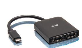 The C2G hub allows a USB-C-enabled device to connect to two HDMI-enabled displays for video mirroring, video extension, or viewing a single video image across two displays. The C2G C2G54540 USB-C to Dual HDMI MST Hub enables users to increase productivity by configuring the hub to work as a splitter with the same video image on each display, extending a video image to multiple displays, or expanding a video image by joining multiple monitors together as one display.