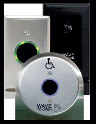 Camden CM-221 Series ValueWave switches help eliminate the spread of germs through the convenience of hands-free activation. Suited for indoor or outdoor use as part of an automatic door or access control system, ValueWave no-touch switches are designed for easy installation in high traffic applications. CM-221 Series switches are available in a range of models with narrow, single and double gang stainless steel faceplates and a selection of laser etched faceplate graphics. Features include an adjustable sensor range 5 to 20 cm; and adjustable time delay (0.5 to 20 sec.) and toggle operation. www.camdencontrols.com