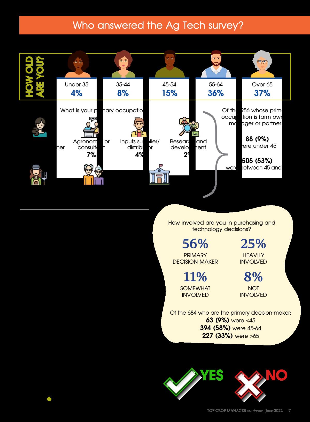 When selecting new products or services to implement on the farm: 70% of respondents do their own research 68% consult a trusted advisor 52% conduct a small trial of the product or service