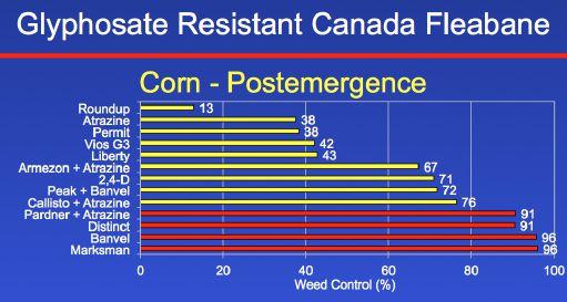 The real challenge in terms of managing glyphosate-resistant Canada fleabane in Ontario is in soybean. It is much harder to remove a dicot weed from a dicot crop than it is to remove a dicot weed from a monocot crop.
