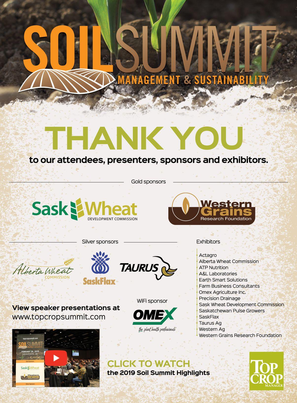 Top Crop Manager thanks the speakers of the 2019 Soil Management and Sustainability Summit for sharing their presentations, images and videos with us. Without their assistance, this digital edition wouldn’t be possible.
