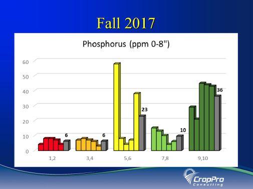 Phosphorous, I would say this is maybe 70 per cent of the time, that this would be the trend with low P fertility on the eroded knolls, and high fertility in the depressions.