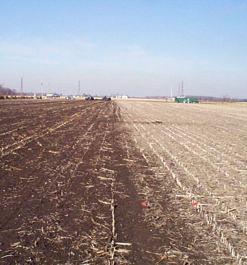 ABOVE: A field treated with compost on one half and without compost on the other half.