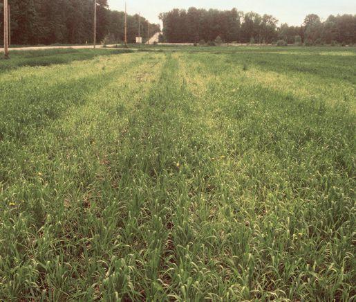 Using a number of small-plot and fieldscale trials, the researchers compared various treatments to a check of applying 90 lbs of N per acre and no fungicide to the winter wheat crop. Johnson says the check produced an average yield of 93 bushels per acre in the small plot trials. Increasing the nitrogen to 120 lbs per acre and applying a fungicide at heading for Fusarium control resulted in an average yield of 105 bu/ac, an extra 12 bushels per acre.