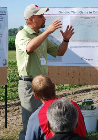 in a large-scale, international outreach program to improve SCN awareness and management. Begun in 2008, the project involves research and extension personnel and soybean growers from Ontario and 12 north-central US states and is supported by OMAFRA, Agriculture and Agri-Food Canada (AAFC), Grain Farmers of Ontario and the Agricultural Adaptation Council through Canada’s Growing Forward initiative, the US North Central Soybean Research Program, and 12 US land-grant universities. Extension personnel are working with growers at two or three locations known to have SCN in Ontario and each of the 12 states each year. They are using strip trials to compare yield from susceptible and resistant commercial soybean varieties, count SCN population numbers, and look at how well the SCN populations can develop on the resistance sources.