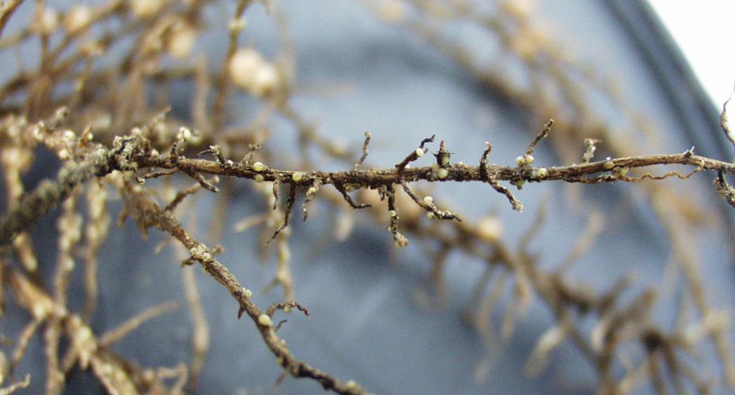 Rather than digging and examining soybean roots for cysts, Giesler recommends having the soil tested because he thinks this method is more reliable.
