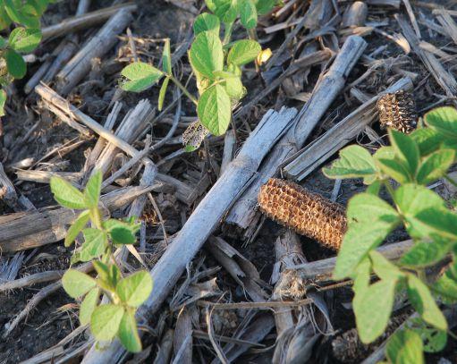 “If there is slow growth early on, it is largely due to the corn residue, which keeps the soil cooler and ties up nitrogen.” He adds that when soybean plants have to emerge through heavy corn residue, it results in poor plant stands and a reduction in yields.