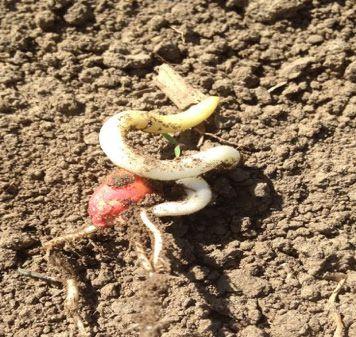 Don’t plant if a cold rain or snow event is forecast for the next one to five days. A seed that takes up cold water early can get imbibitional chill. The cells rupture and the mesocotyl (the structure between the corn seed and the crown) can corkscrew, rupture or leaf out underground, which causes the seedling to die. Early irrigation can also have the same effect with cold irrigation. “We see that cold chill effect up at Lacombe just about every year.”