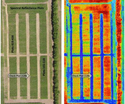 Another important objective of the project is the development of tools to help growers the assess the most efficient in-season application rate, using multispectral hand-held spectrometers and aerial drones to estimate corn N uptake in season and response to topand side-dressing fertilizer sources.