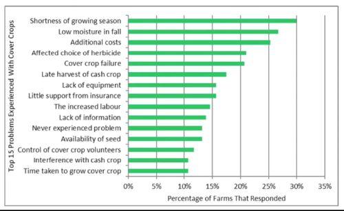 Low moisture in the fall was also a challenge for 27 per cent of farmers. The additional costs of growing cover crops (25 per cent) and the impact of cover crop on herbicide choice (21 per cent) were also common problems identified by respondents. It appears these challenges are not insurmountable, and by identifying them, farmers can proactively innovate their way out of those challenges. But it also allows researchers and extension the opportunity to see where research needs to be targeted.