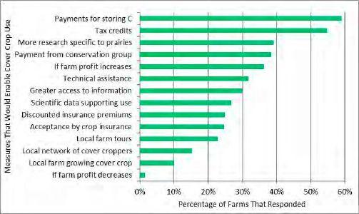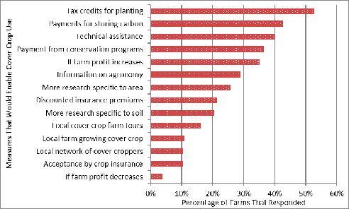Cover crops are at a very early stage of adoption, and there are a few things that would encourage it. The survey found that top two practices to encourage farmers to grow cover crops were payments for storing carbon (59 per cent) and tax credits for planting cover crops (55 per cent). The implementation of these practices will be complex, but that is where farmers are looking to help cover some of the additional costs of cover crops.