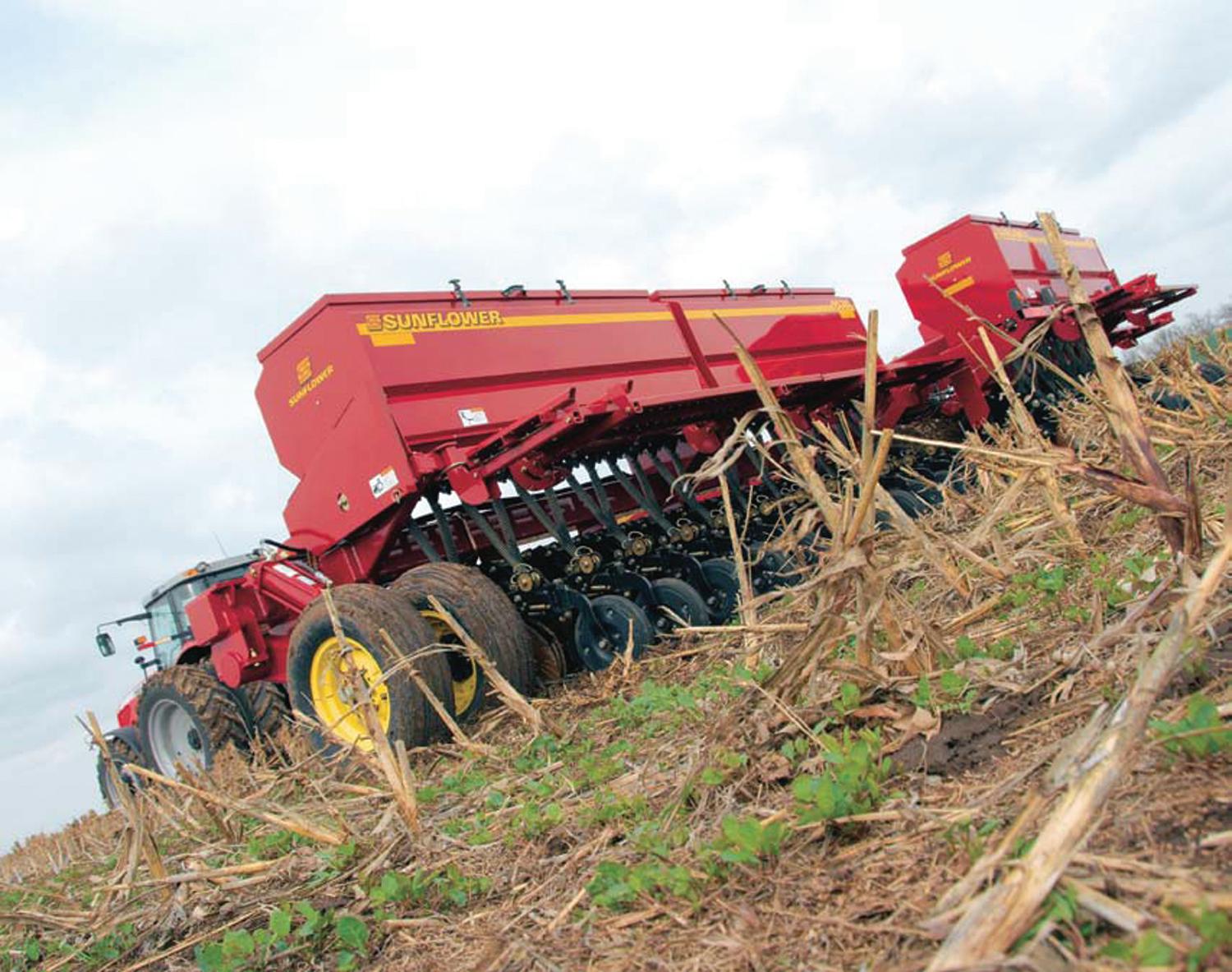 As acreages continue to grow, producers are looking for more options with their grain drills, as well as greater efficiency. And the new Sunflower 9530 fertilizer/grain drill from AGCO Corporation meets both of those needs. A proven, staggered grain box design and Heads Up Opener Assembly allows the 9530 to deliver exact placement of seed and fertilizer in any field conditions using conventional or no-till.