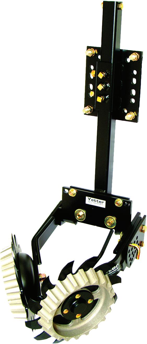 The new addition to Yetter’s line-up of coulters can slice through tough residue with a high-strength steel arm that fits tightly between a twin-arm mounting bracket. The unique configuration of the mounting bracket uses stops to prevent the coulter from moving on the frame. This coulter also has a wide vertical range of adjustment.