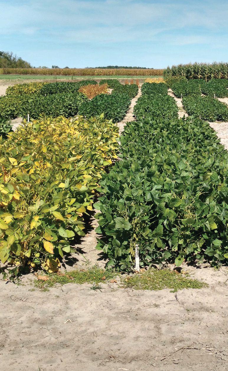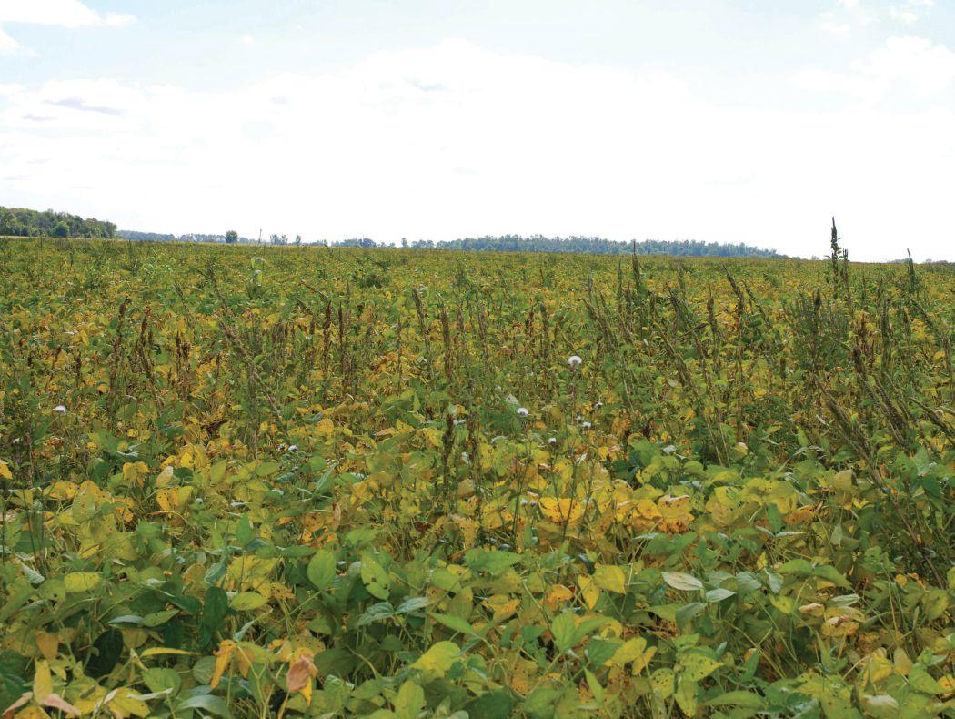 TOP: A weedy soybean field near Denfield, Ont. Controlling weeds early is important for maximizing soybean yields.