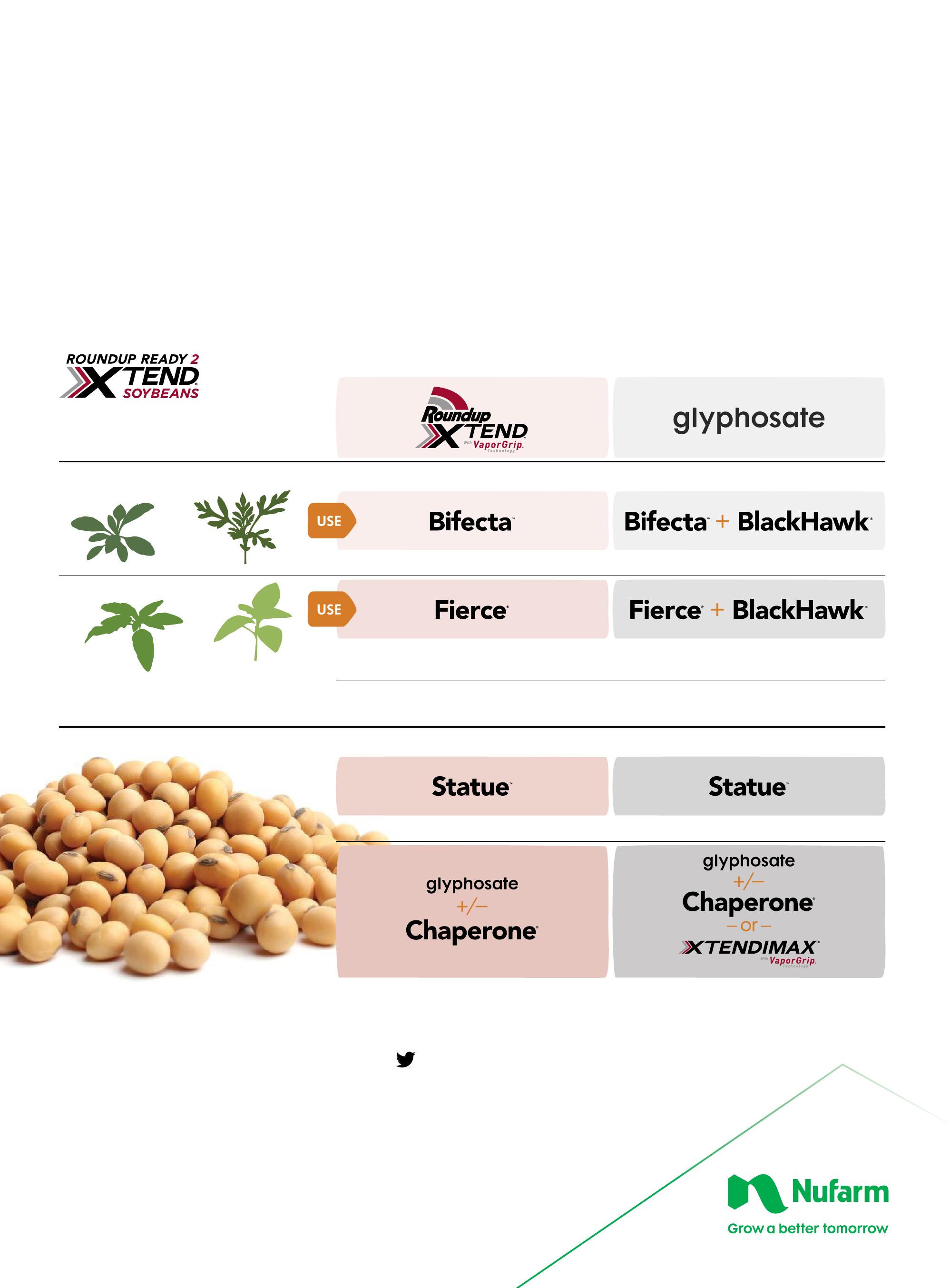 Nufarm knows the importance of getting weeds out of the way early. Our trusted soybean herbicide portfolio will strengthen your weed control program at both the pre-seed and in - crop application timings. Listed below are some options that will also help manage Group 2- and glyphosate-resistant weeds.