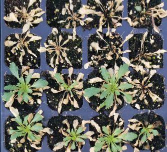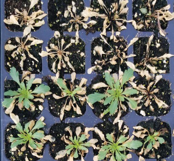 Segregating populations of Canada fleabane after a herbicide application, like the one shown here, can be compared to locate the genes associated with the resistance.