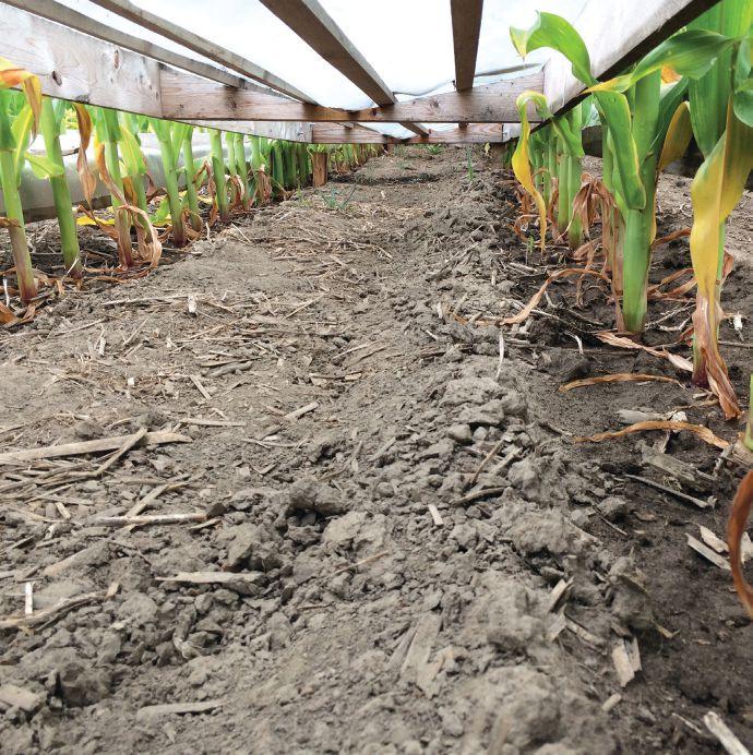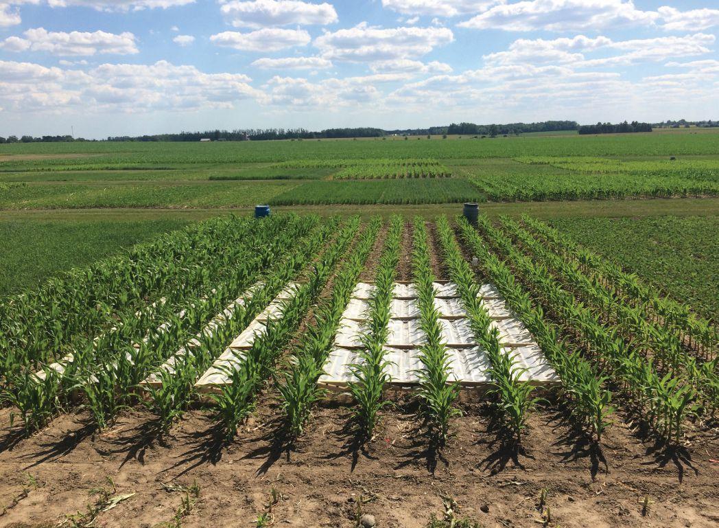 ABOVE: Corn plots with drought treatments during a University of Guelph study looking at diverse rotations for improved resiliency in drought conditions.