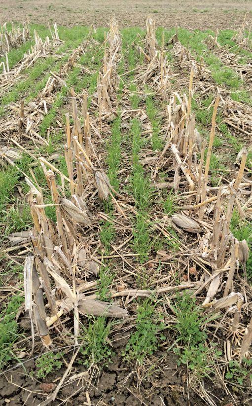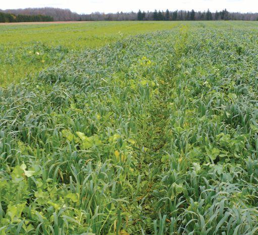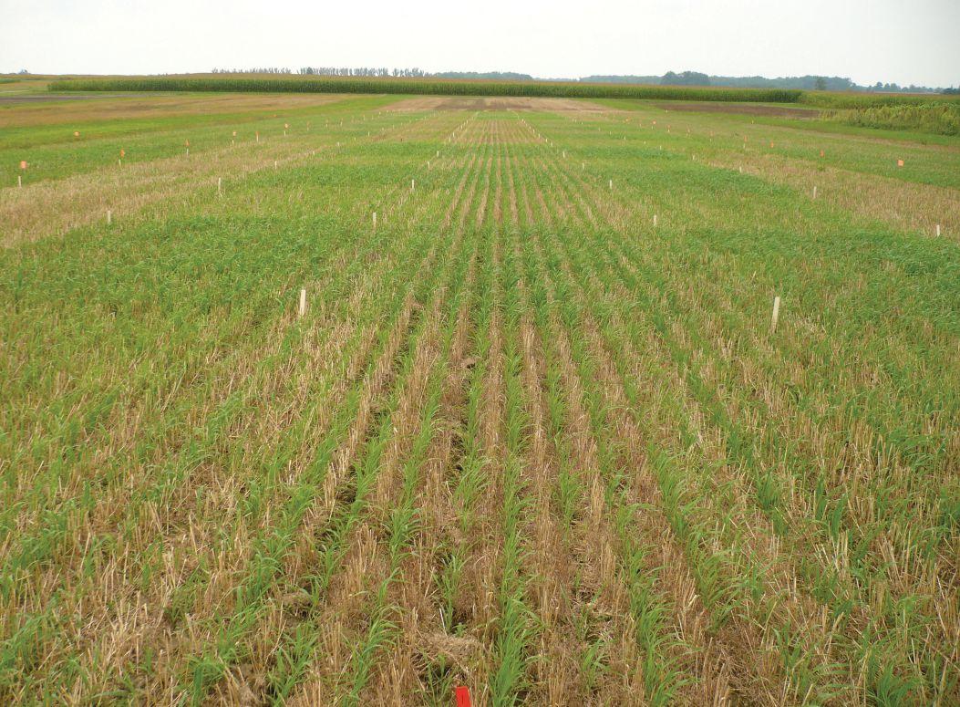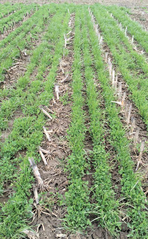 TOP: Different cover crops and nitrogen rates were used on plots for a three-year research project at the University of Guelph examining the agronomics and nutritional aspects of doublecropped forages following a winter wheat harvest.