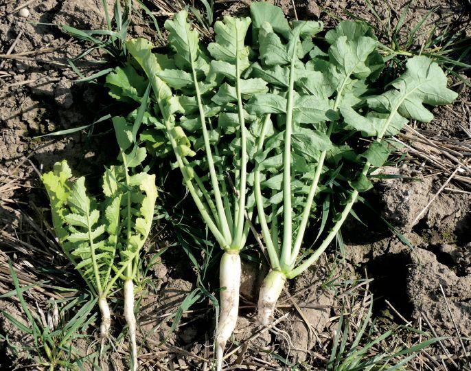 There are more agronomic implications from the study. Brown also noticed that when an eight-species mix of cover crops was planted without digestate, all of the root systems demonstrated improved growth – “the diversity made a bigger difference,” she says. But when the eight-species mix was planted with digestate, the grass and radish species in the cover crop mix took over.