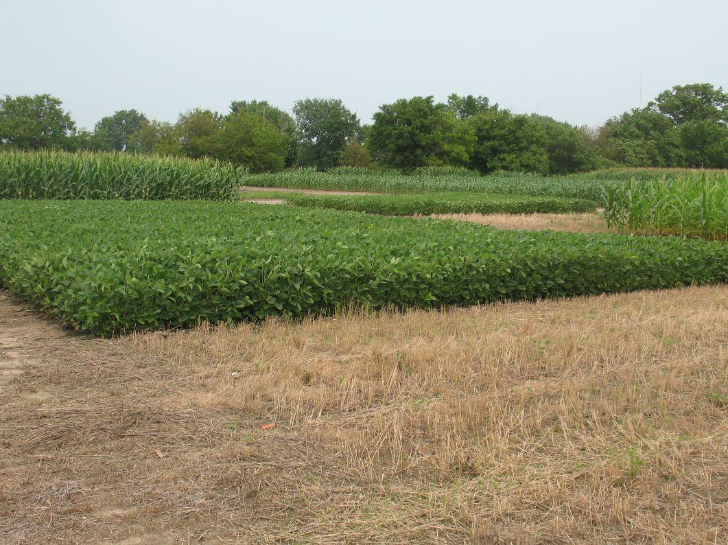 In all the crop rotations except the continuous soybean treatment, soybeans were planted in 15-inch rows versus 30-inch rows.