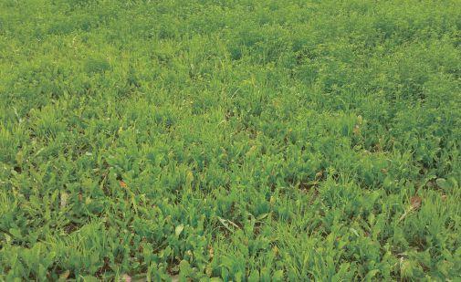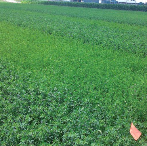 MIDDLE: Close up of low sulphur indicating a near lack of alfalfa without added sulphur at third cut.