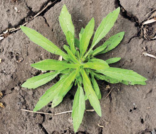 “Tillage is very good at controlling Canada fleabane, if it is aggressive and early. It has to be effective enough to knock the soil off the roots so the fleabane has zero chance of recovery,” Cowbrough says.