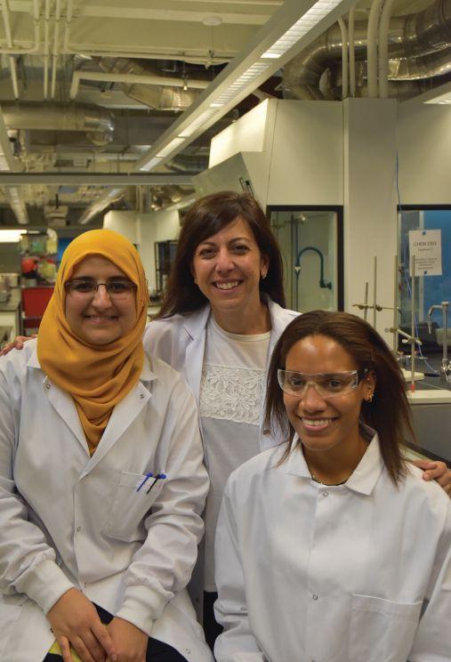 Maria DeRosa (centre) and students Shahad Abdulmawjood (left) and Fiona Ebanks (right) working in the LADDER at Carleton University. The goal, DeRosa says, is to develop the test to be more quantitative, rather than just visual.