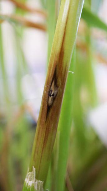 Stems of actively growing oat plants were inoculated with the different fungi. A pin was used to create a wound on the stem and then some of the hyphae (fungal filaments) was placed on the wound. After inoculation, they tracked the infection, measuring the length of the lesion and determined the stem strength.