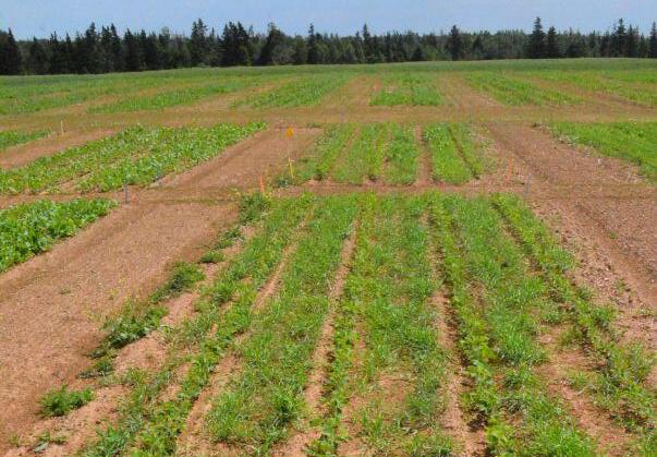 shown in this trial at Harrington, P.E.I., comparing 50 kg/ha (middle row), 100 kg/ha (bottom row)