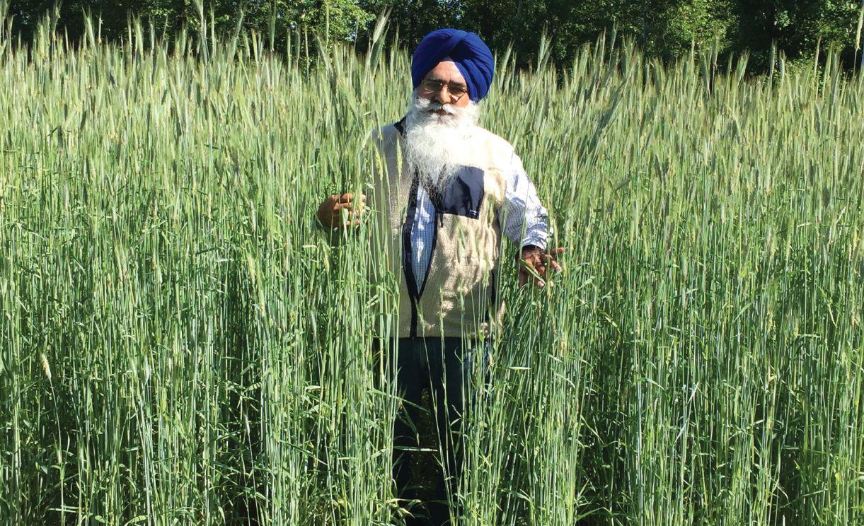 LEFT Tarlok Singh Sahota stands in a field of winter rye, a cover crop he suspected was responsible for lowering yields in the spring crops planted after.