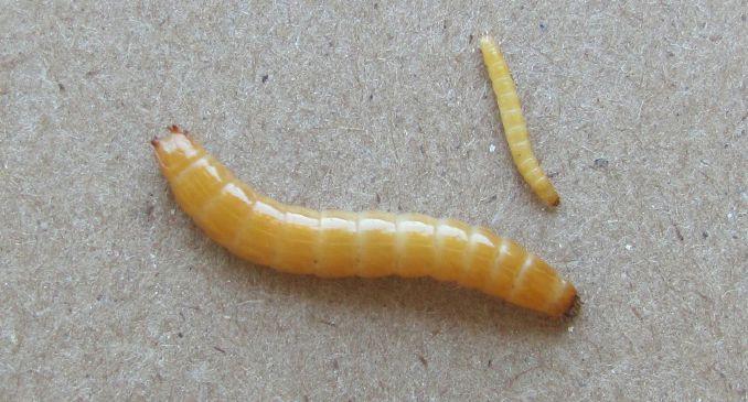 Adult and larval stages of the main pest wireworm species on the Prairies. From left to right: Hypnoidus bicolor (no common name), Selatosomus aeripennis destructor (Prairie grain wireworm), and Aeolus mellillus (flat wireworm).