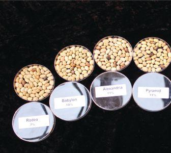 Micronutrient application was investigated in the other two components. Boron was applied at 11.2 kg/ha, molybdenum was applied at 49.4 g/ha and manganese was applied at 2.8 kg/ha with the seed at planting. Foliar trials included boron applied just before flowering, molybdenum applied twice (pre-emergence and at the 4-6 node stage) and manganese applied once at the 4-6 node stage. Combination products Precede (5-19-4-4.0Zn-1.0B), Releaf (4Ca-1Mg + Transit-S + TE) and 42Phi (4Ca-1Mg + Transit-S + TE) were also compared.
