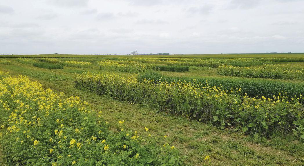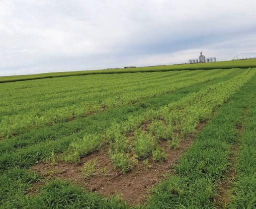 “In the trials we compared both full-season crops maturing to seed production and crops terminated at the heavy vegetative biomass stage as a green manure,” Chatterton explains. “Although we recognize that producers likely won’t do that, we wanted to look at green manure as a proof of concept to see if it works in the field, and if so then to figure out if it can work agronomically. We are also comparing no-tilled plots with tilled plots to find out if the biofumigant crops need to be tilled into the soil to be effective, as was observed in previous greenhouse studies. Soil samples were collected to try to quantify the level of oospores before and after the cover and rotational crops. In 2020, peas were seeded across all of the plots. We plan to repeat the rotation se -