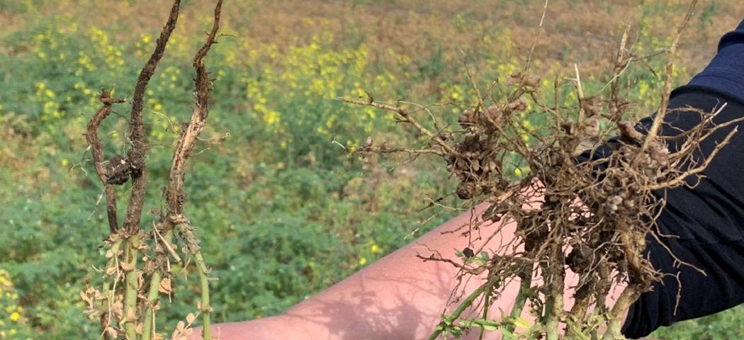 Aphanomyces root rot disease of field pea and lentil continues to challenge researchers and growers across western Canada. With management tools currently limited to extended rotations and an early season seed treatment, researchers continue to work towards developing new disease management strategies. In one project underway, researchers are taking some promising greenhouse results of using Brassica crops and other beneficial crops as potential biofumigants in rotation out into field trials.
