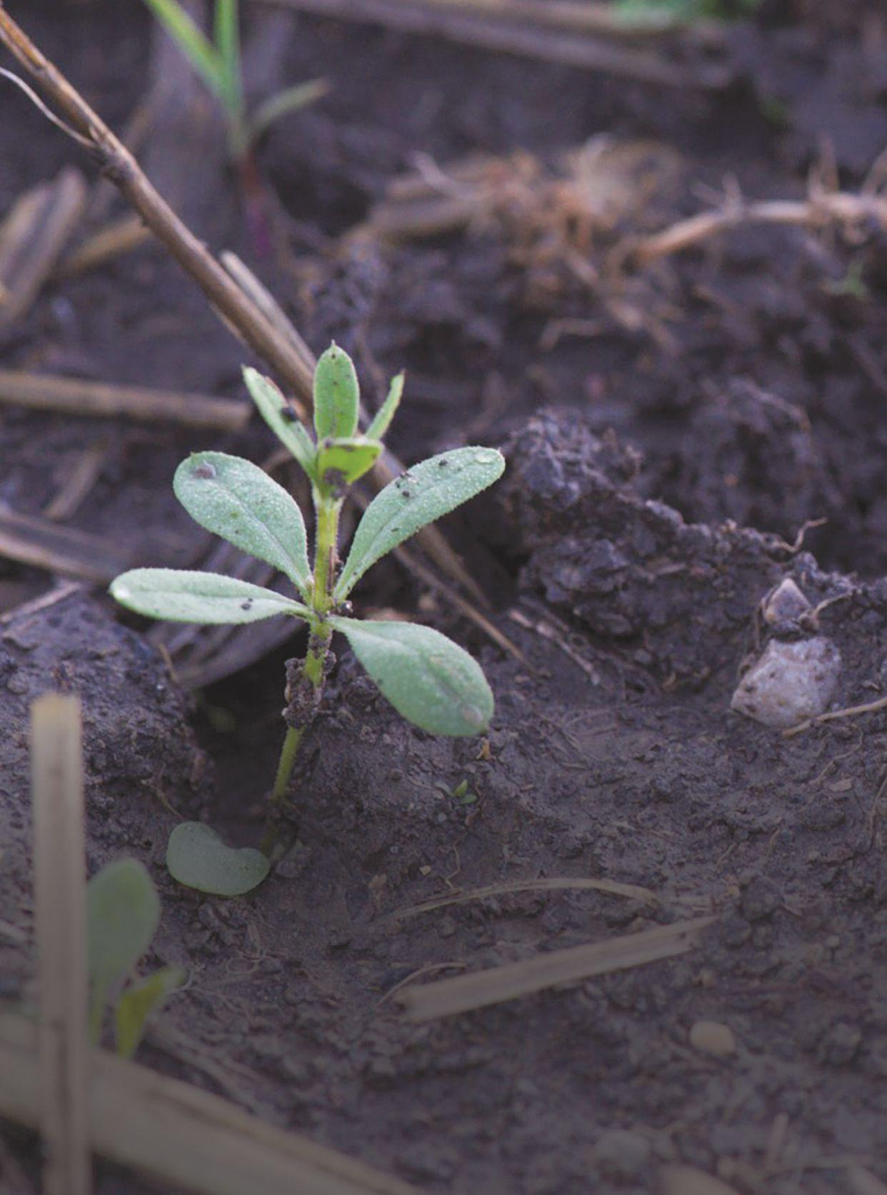 The idea of biofumigant crops has been more well-studied in mustard and other Brassica crops, which contain naturally occurring compounds called glucosinolates that can suppress various soil borne pests and diseases. When the green biomass decays, the glucosinolates are released and break down into isothiocyanate (ITC), which is a natural gas released from the plant tissues that is toxic to other microorganisms such as oospores of aphanomyces. The compounds help decay the oospores that remain in the soil, reducing disease pressure. One of the questions is whether these compounds need contact with the soil to reach oospores, as well as whether or not tillage is necessary.