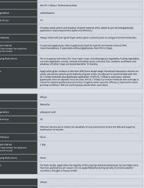Group 14 active ingredients are an important mode of action for kochia control. This mode of action can be used for pre-seed burndown (pyraflufen, carfentrazone-ethyl, saflufenacil), pre-emergence control in wheat and some pulses (flumioxazin, sulfentrazone), desiccation (carfentrazone-ethyl, saflufenacil, flumioxazin) and post-harvest (pyraflufen) applications. Pre-seed and pre-emerge applications of non-residual herbicides like carfentrazone-ethyl or pyraflufen are especially important for controlling multiple-resistant kochia.