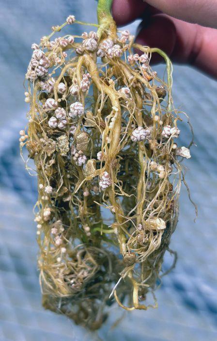 RIGHT Roots of one of these navy bean plants inoculated with rhizobia from Ontario soils, showing effective nodulation.