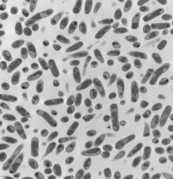 ABOVE A transmission electron micrograph of cells of a rhizobium that forms nodules on alfalfa.