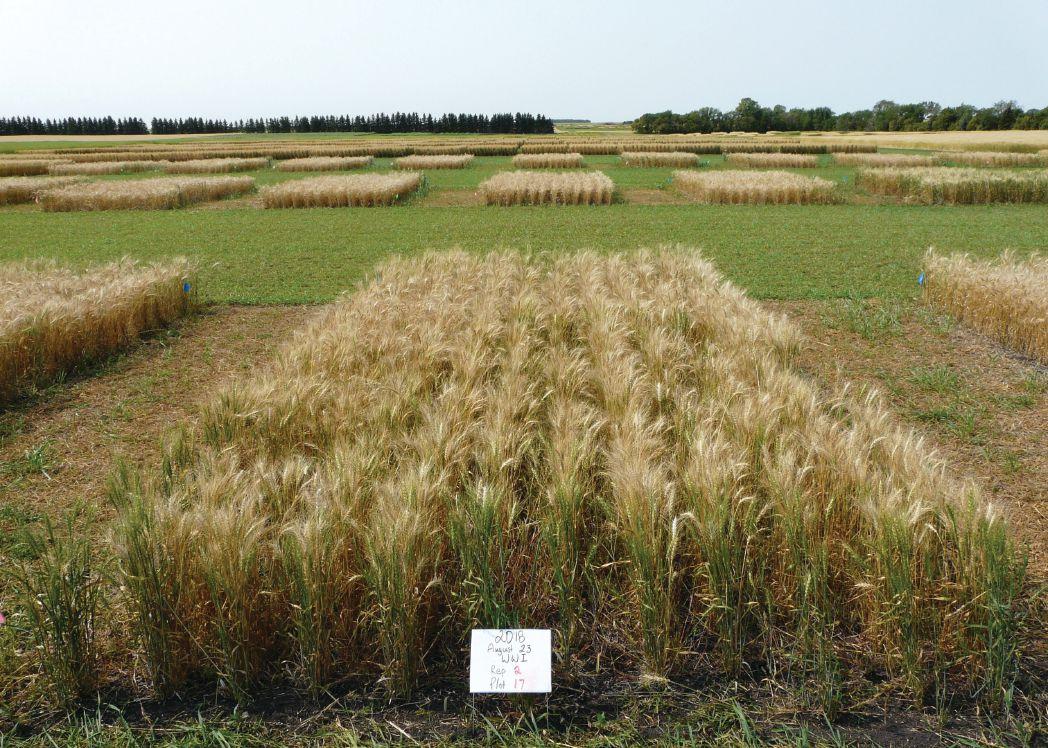 ABOVE: Winter wheat plots in phase two of the canola-winter wheat-canola rotation at site one, AAFC Melfort Research Farm.
