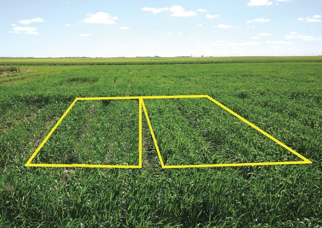 ABOVE: Seeding at a higher seeding rate (right) resulted in a more uniform stand and easier fungicide timing.