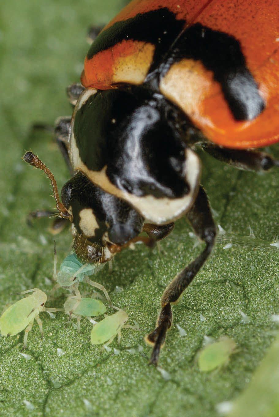 Beneficials such as lady beetles, green lacewings, and parasitic wasps are natural enemies and can help suppress aphid populations.