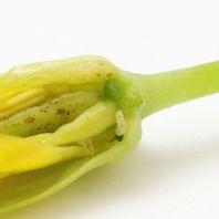 Take note of unopened (galled) flowers during flowering. Gently dissect damaged flowers to search for the yellow midge larvae. Larvae of canola flower midge will “jump” by coiling their ends together and releasing in a springlike action. Galled flowers are easily spotted amongst developing pods at the end of flowering, but larvae may have already exited the flowers by this time.